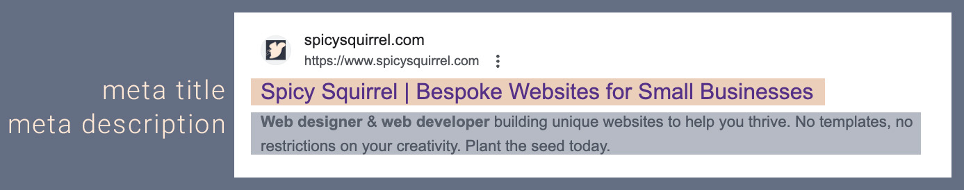 Metadata: this is the text that shows up on the search engine results page (SERP) and previews your content. This is important because users scan this information when deciding which of the links to click through. Search engine results comprise of meta titles and meta descriptions: